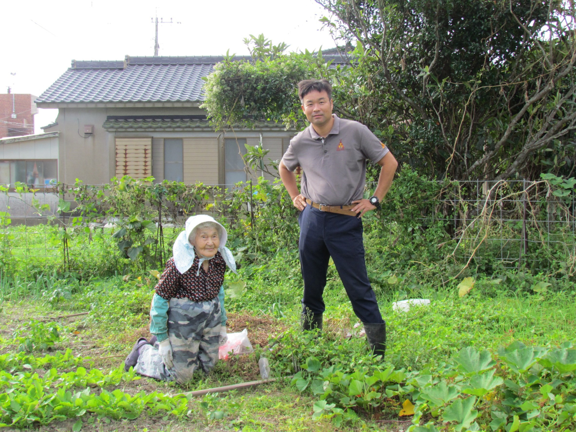 Three years ago, we met an old farmer lady working at her orchard alone, but she was too old to do the heavy physical work every day. So we helped her work as much as we could whenever she asked us.